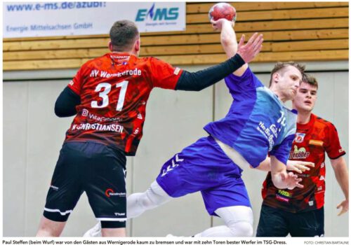 Dieser junge Mann war Tom Kaufmann, der nicht nur dank seiner zwölf Tore überragender Mann beim HV Wernigerode war, sondern das Spiel seiner Mannschaft auch lenkte. „Wir wussten, dass er ein starker Spieler und Wernigerode angriffsstark ist, aber dass wir vor der Pause in der Abwehr überhaupt keinen Zugriff auf das Spielgefühl bekommen, das kann nicht unser Anspruch sein“, blickte Weiß später auf die erste Halbzeit zurück.